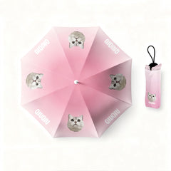 This custom pet umbrella features your cat or dog’s portrait printed directly on the canopy — a playful and heartwarming way to carry your pet everywhere you go. Made with high-quality PG blackout fabric and a UV-blocking black coating, it provides excellent sun protection and keeps you dry on rainy days.
